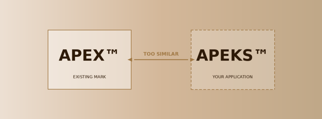 This does not necessarily mean the marks are identical. A mark that sounds similar, looks similar, or carries similar commercial meaning may still trigger a refusal — particularly when the goods and services overlap.