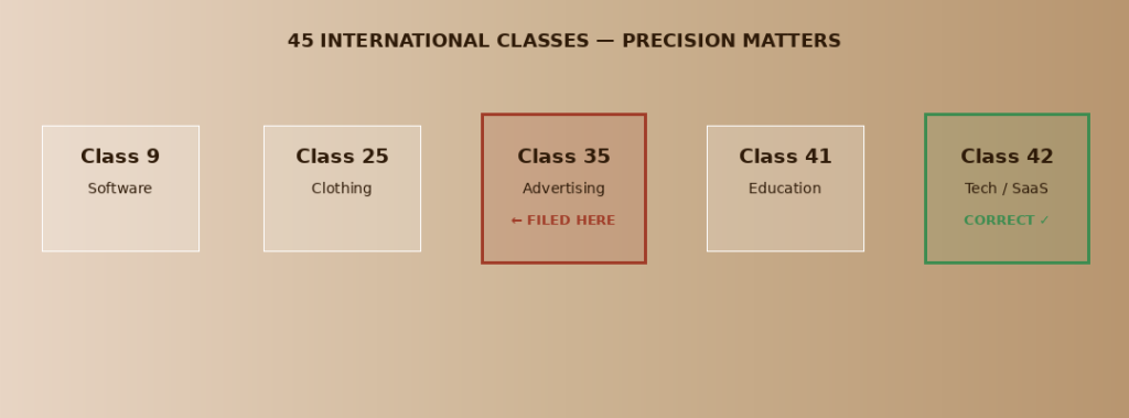 Many businesses operate across multiple classes — a technology company might need protection in Class 9 (software), Class 42 (SaaS services), and Class 35 (business consulting) simultaneously. Missing a class leaves your brand exposed.